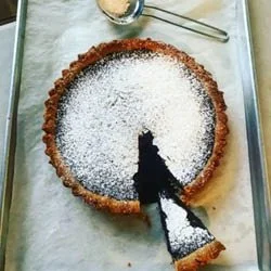 In a food processor pulse together butter, flour, almond meal, and powdered sugar until you get a coarse sand consistency. Add the egg and sesame and work lightly until you get a rough dough. Press this into a 9 inch tart pan, coming about 1 inch up the sides if your pan is deep.